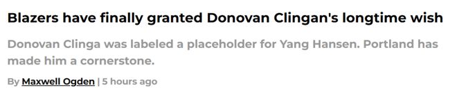 美媒:克林根曾被视为杨瀚森过渡替身 如今已成开拓者建队基石